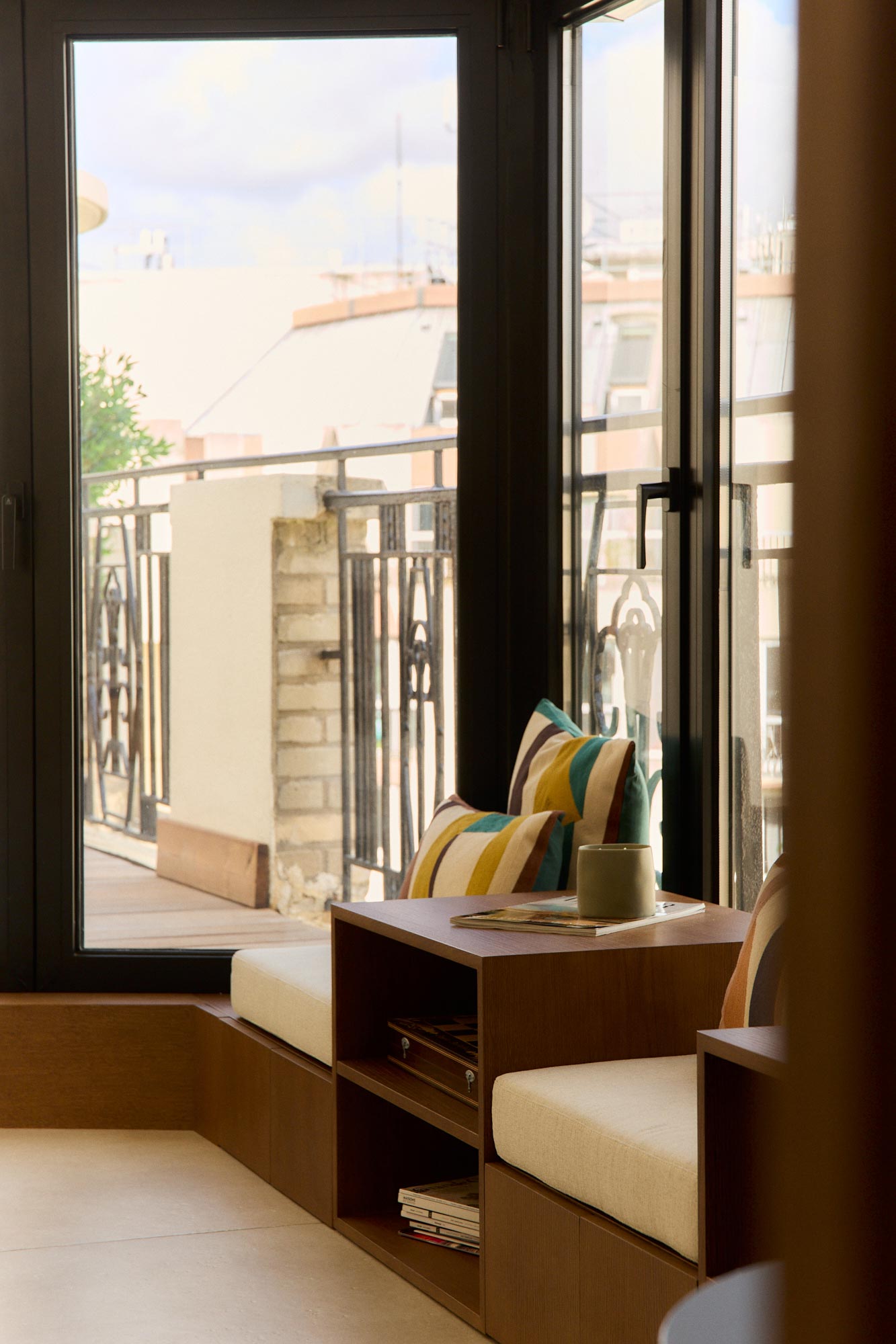 Et, pour couronner le tout, une belle terrasse de 15 m2 s’ouvre depuis ce salon, offrant à l’appartement une respiration rare et précieuse au-dessus de la ville.