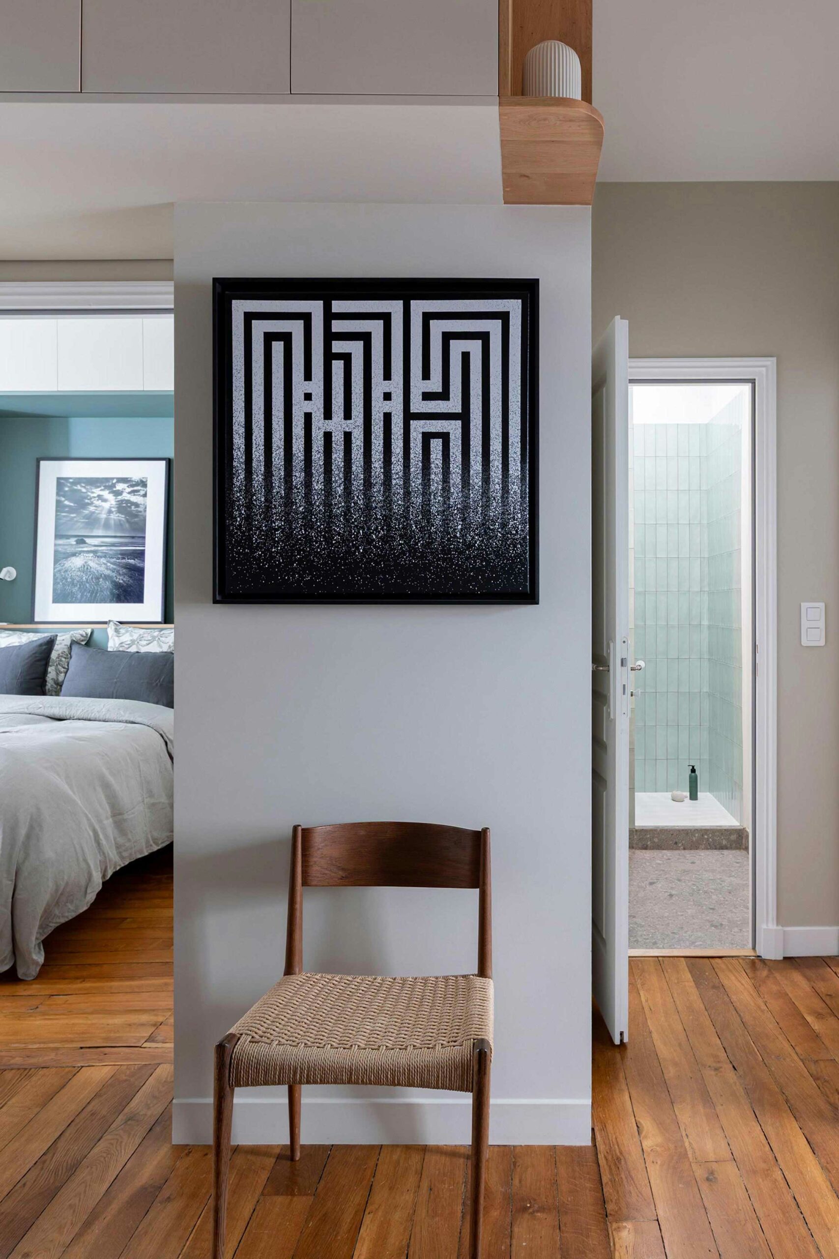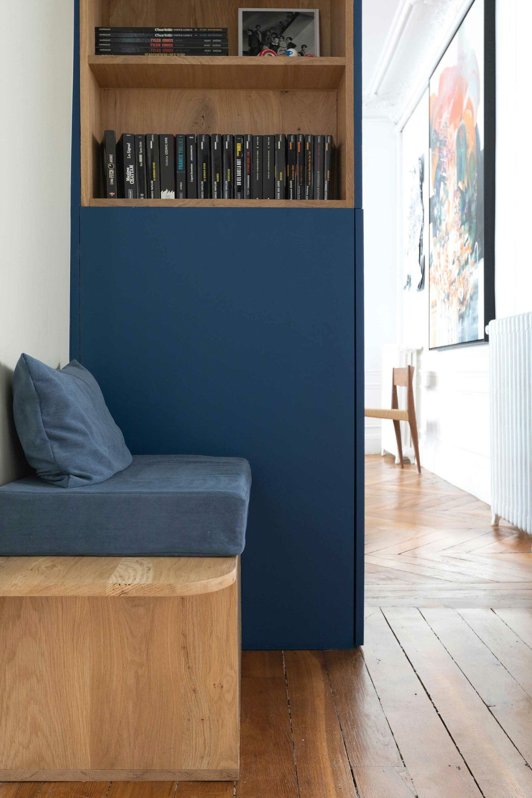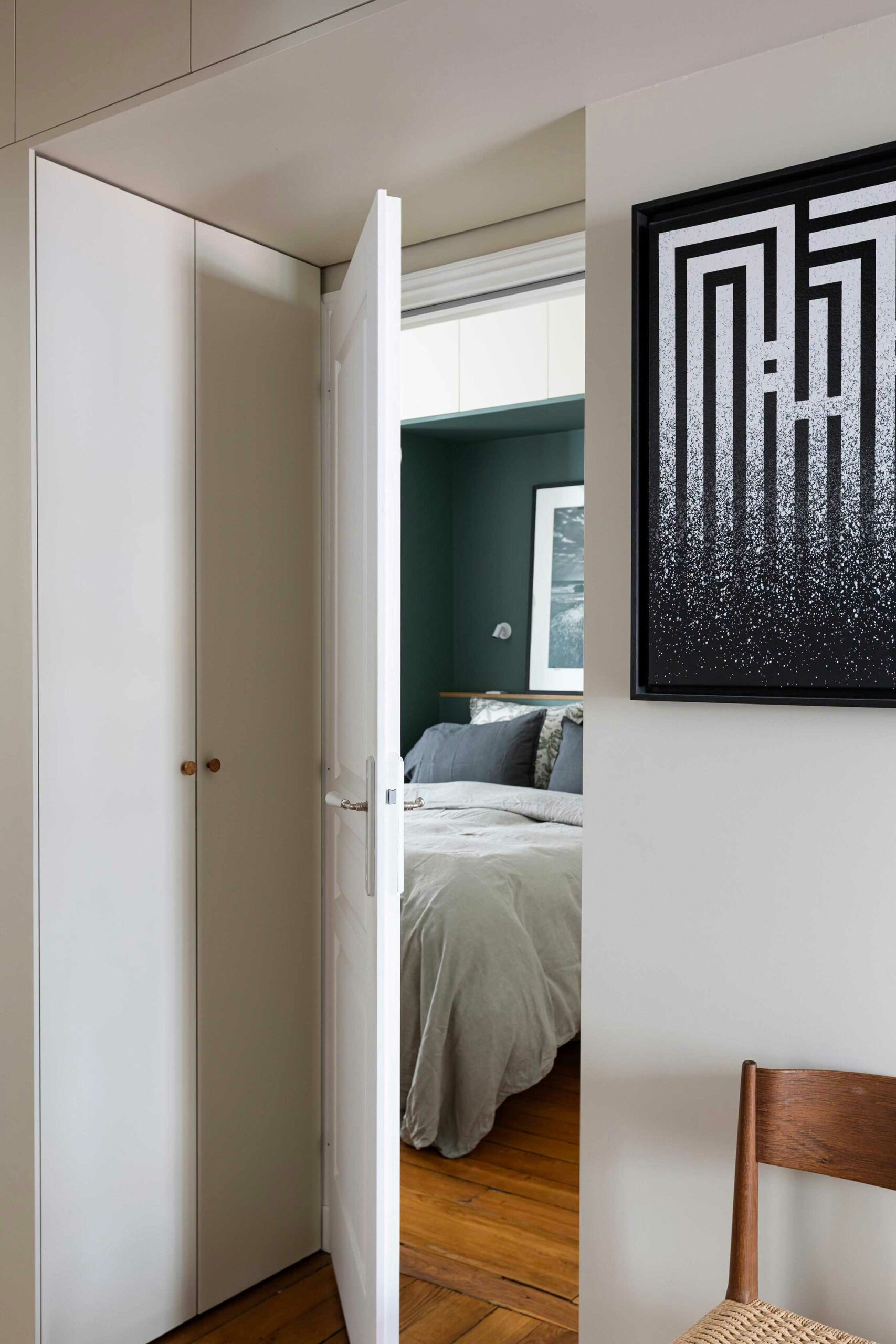Du côté de celle-ci, la demande allait dans le même sens : optimiser et intégrer un maximum de rangements, mais cette fois dans un volume plus restreint, nécessitant une réflexion encore plus précise sur l’usage de chaque centimètre.