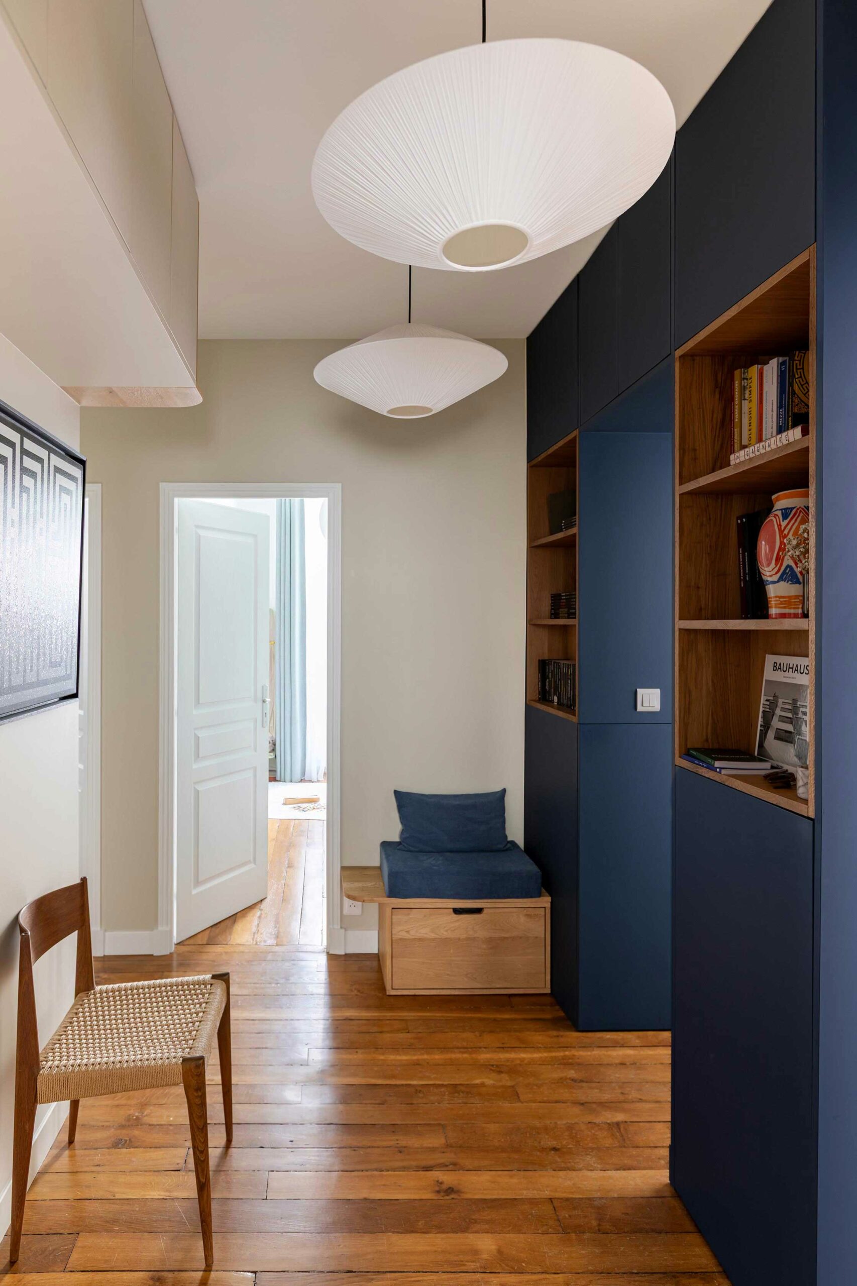 Après un mois et demi de travail, l’appartement a retrouvé tout son cachet et s’est enrichi d’une multitude d’espaces de stockage parfaitement intégrés, offrant désormais à toute la famille un intérieur plus fonctionnel, fluide et chaleureux.